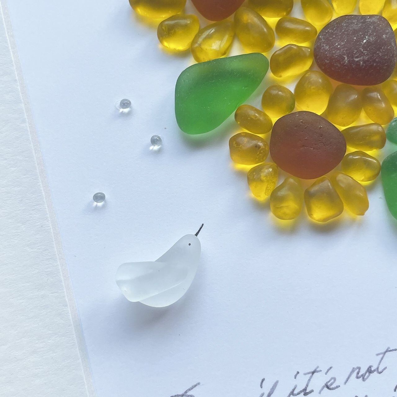 黄色のフロストガラスとシーグラスを使って色鮮やかに表現しました。