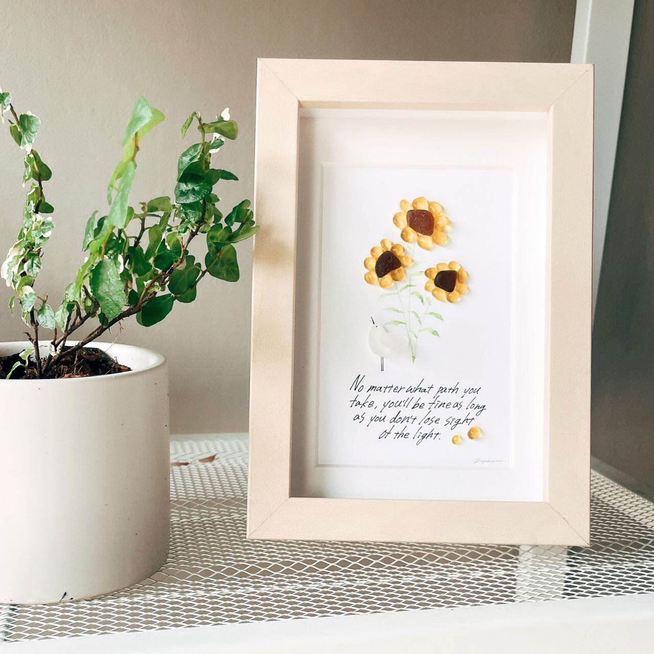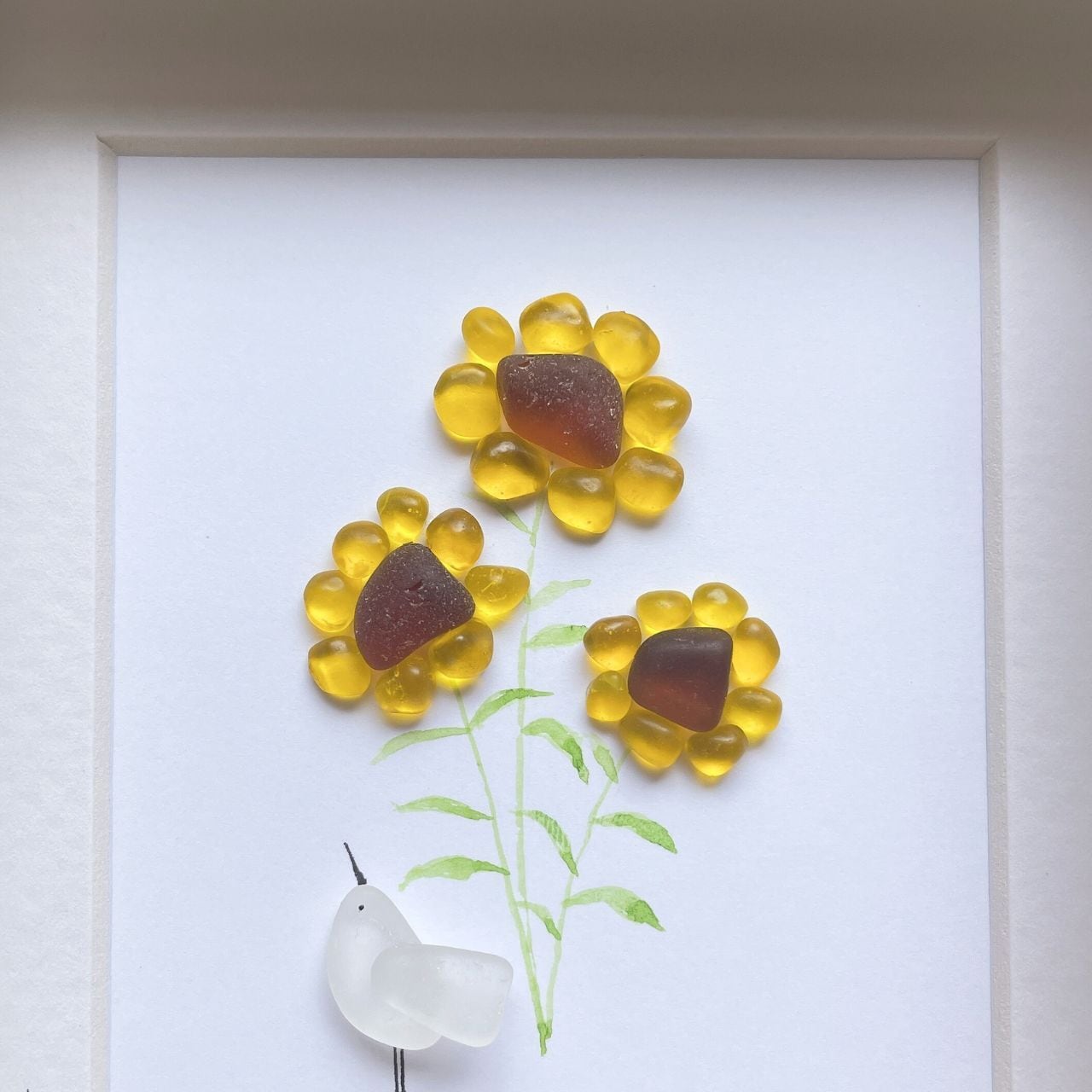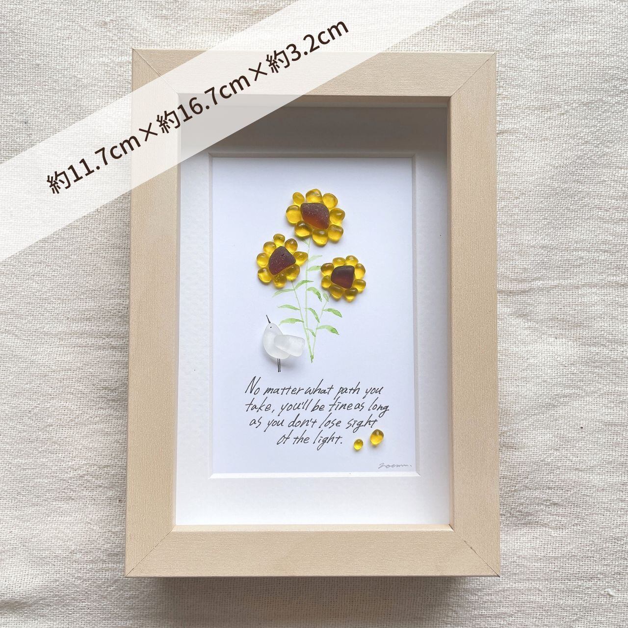 夏の最後の煌めき、ひまわりをシーグラスアートに落とし込みました。
